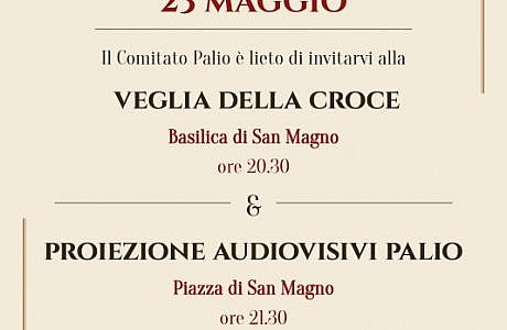 Venerdì 23 maggio p.v. alle ore 21.30 in piazza San Magno (al termine della cerimonia di Veglia della Croce) si...
