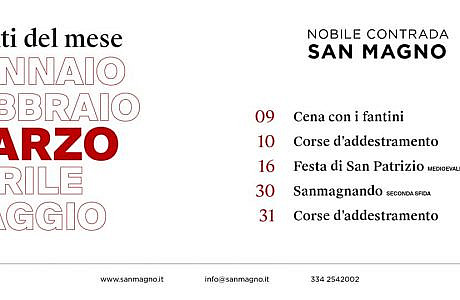 Leggi tuttoNella locandina allegata gli eventi organizzati dalla Contrada San Magno per i prossimi mesi
