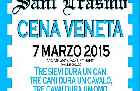 Leggi tuttoSabato 7 Marzo alle ore 20:00 ‘Cena Veneta’ nel Maniero di Sant’ Erasmo. Tutte le info nella locandina allegata