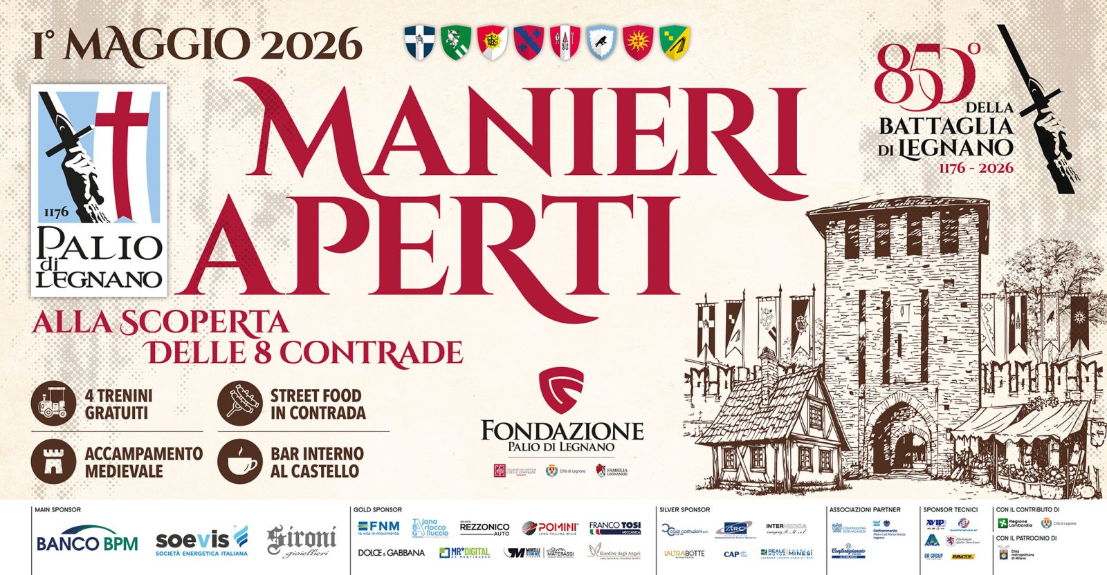 Tradizioni, cultura, storia ma anche attività per bambini e riscoperta del territorio. Con i Manieri Aperti, per una giornata intera, le otto contrade del Palio di Legnano aprono le porte alla città ed ai visitatori. Si tratta di un’occasione unica e privilegiata per poter scoprire questi luoghi d’identità culturale che rendono unica la città di Legnano.