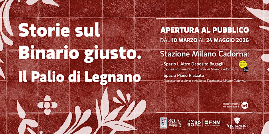 FNM, in collaborazione con la Fondazione Palio di Legnano, ha realizzato presso lo spazio l’Altro Deposito Bagagli della stazione di Milano Cadorna di FERROVIENORD, la mostra “Storie sul binario giusto. Il Palio di Legnano” (Galleria commerciale, dal 10 marzo al 24 maggio 2026, da mercoledì a domenica, dalle 12:00 alle 18:00, chiuso il giorno di Pasqua, 25 aprile, 1 maggio).