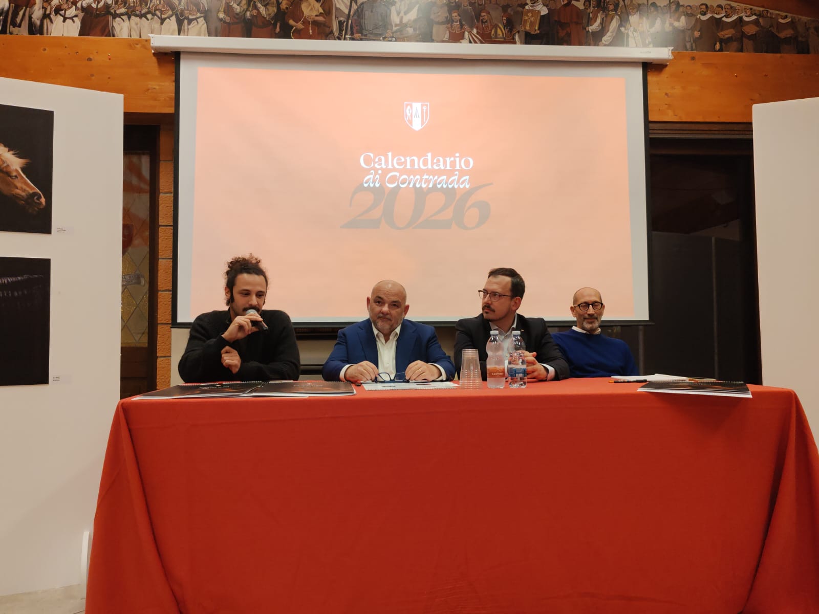 Dopo tanti anni la Contrada ha scelto di innovare il consueto appuntamento che vedeva la presentazione del Calendario fra gli eventi della tradizionale cena del 5 Novembre ed ha deciso di dedicare alla presentazione una serata ad hoc, con l’obiettivo di dare maggiore lustro al progetto e il giusto tributo alle tante persone che ne contribuiscono alla realizzazione.