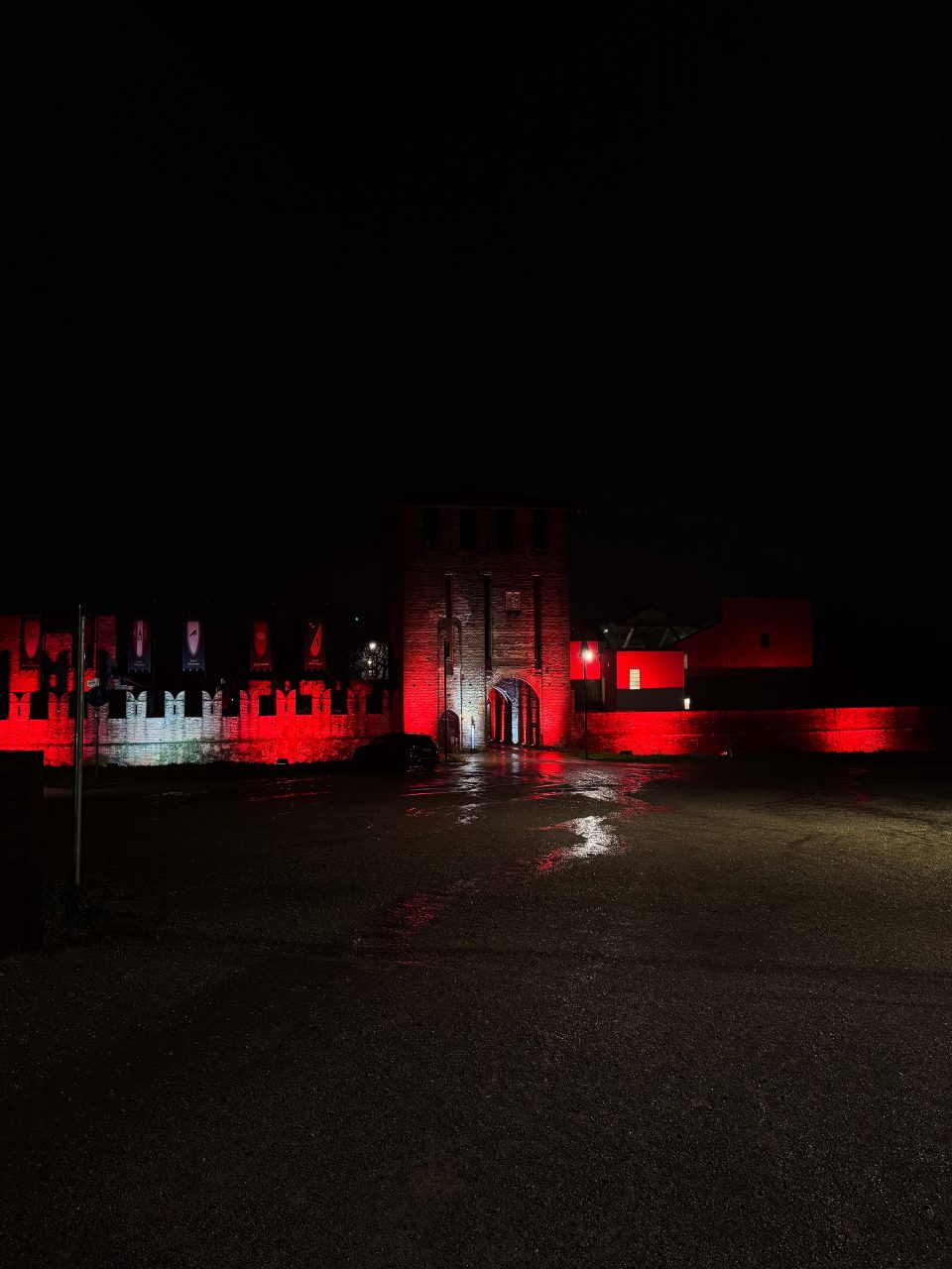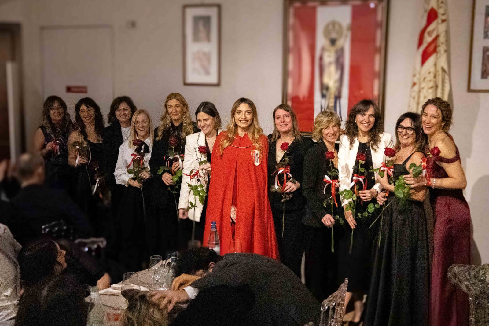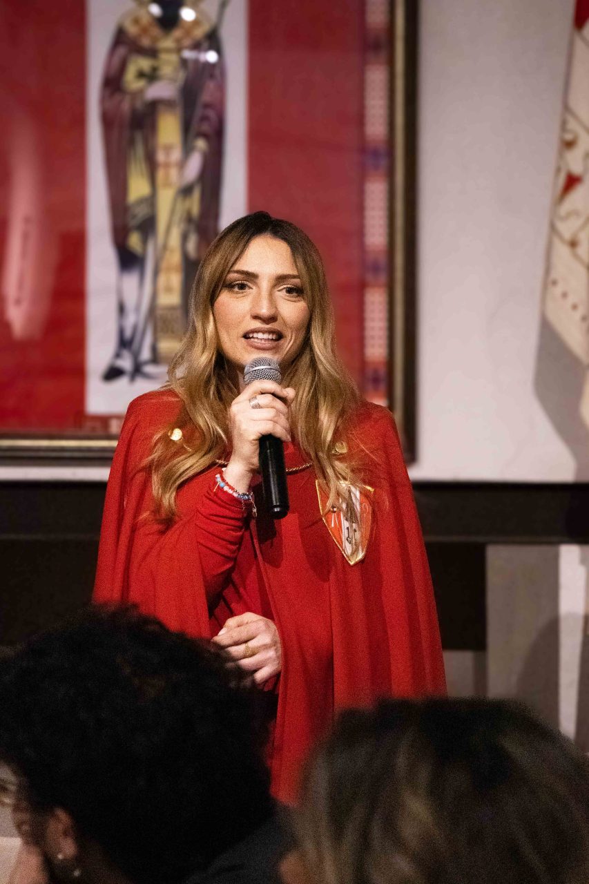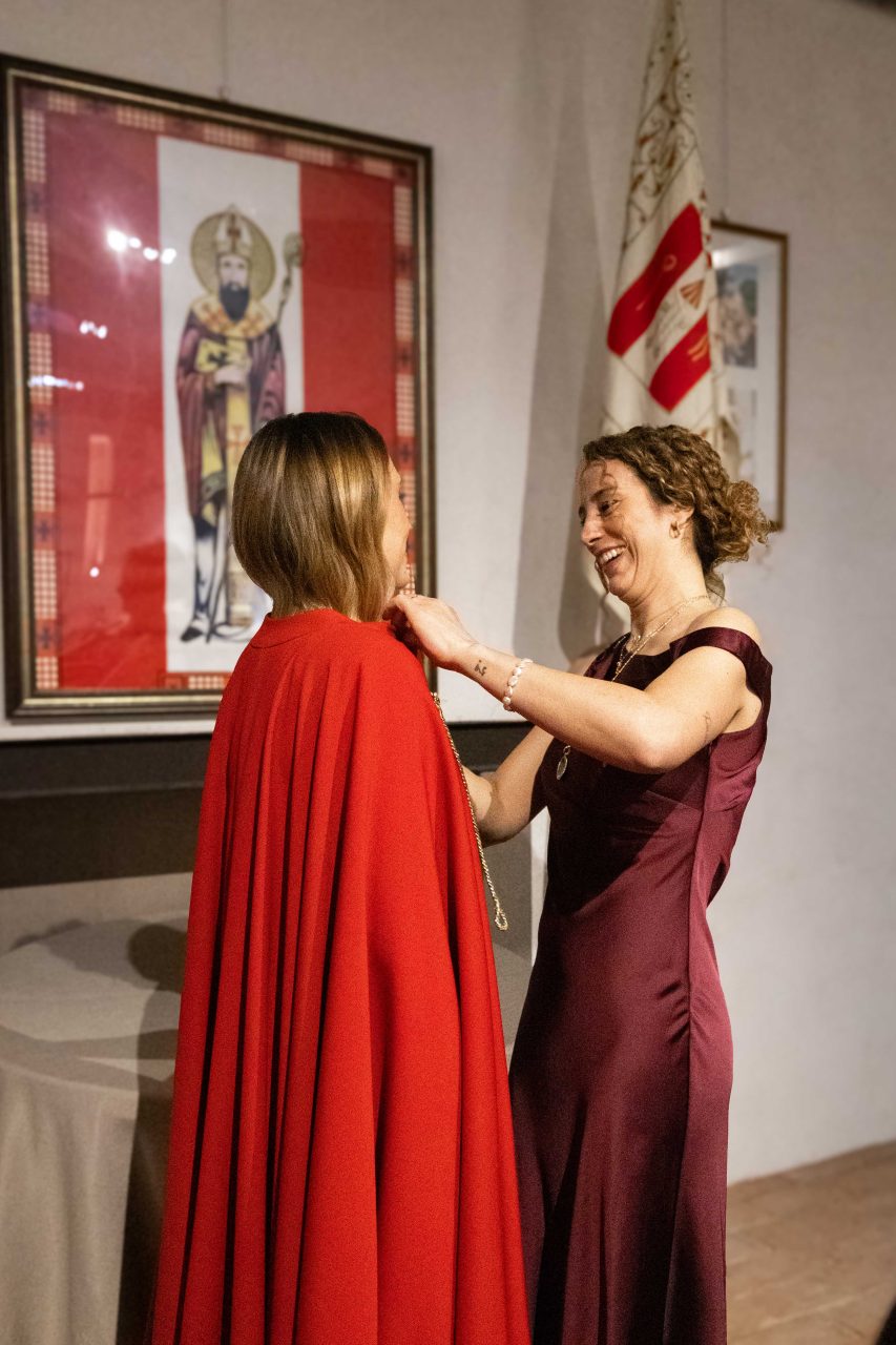 Il Castello, già ricco di fascino, si è trasformato in un abbraccio di colori rossobiancorossi: le mura illuminate, i ritratti delle Castellane non reggenti nella sala Pinacoteca e gli splendidi abiti esposti hanno raccontato, in silenzio, una storia fatta di eleganza, dedizione e passione. Angelica ha vissuto la “sua” festa con grande intensità, scegliendo di condividerla con le altre Castellane e rendendo omaggio a chi l’ha preceduta. Donne unite dallo stesso amore per San Magno, capaci di portare avanti un ruolo tanto bello quanto impegnativo. Nelle parole di ringraziamento a coloro che hanno reso magnifica la serata, Angelica ha anche invitato i presenti a riflettere su quanto conti ogni contradaiolo, dal più piccolo al più grande, e di come ogni contributo permetta di portare avanti la storia e le tradizioni della Contrada con passione.