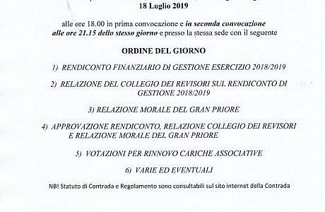 Leggi tuttoE’ indetta l’ Assemblea generale dei soci della Contrada S. Ambrogio per lunedì 09 settembre ore 21:30 presso il maniero...