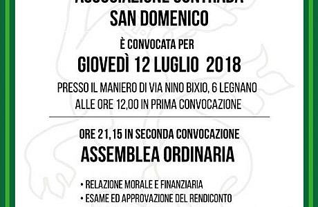 Leggi tuttoLa Contrada S. Domenico informa che giovedì 12 luglio è convocata l’assemblea ordinaria. V. locandina allegata