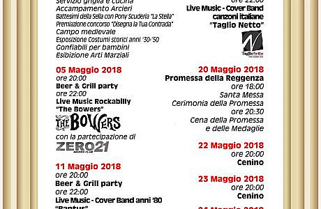 Leggi tuttoDA VENERDì 4 MAGGIO 2018 A VENERDì 25 MAGGIO 2018 – DALLE ORE 20.00 Cenini in Maniero Finalmente ci siamo…Maggio...
